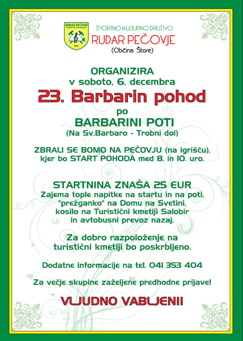 ŠKD Rudar Pečovje vabi na tradicionalni 23. Barbarin Pohod