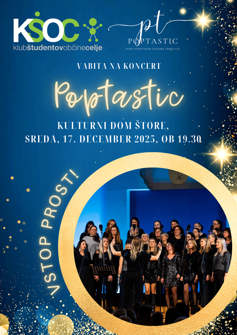 Klub študentov Občine Celje in pevski zbor Poptastic vabita na koncert Poptastic
