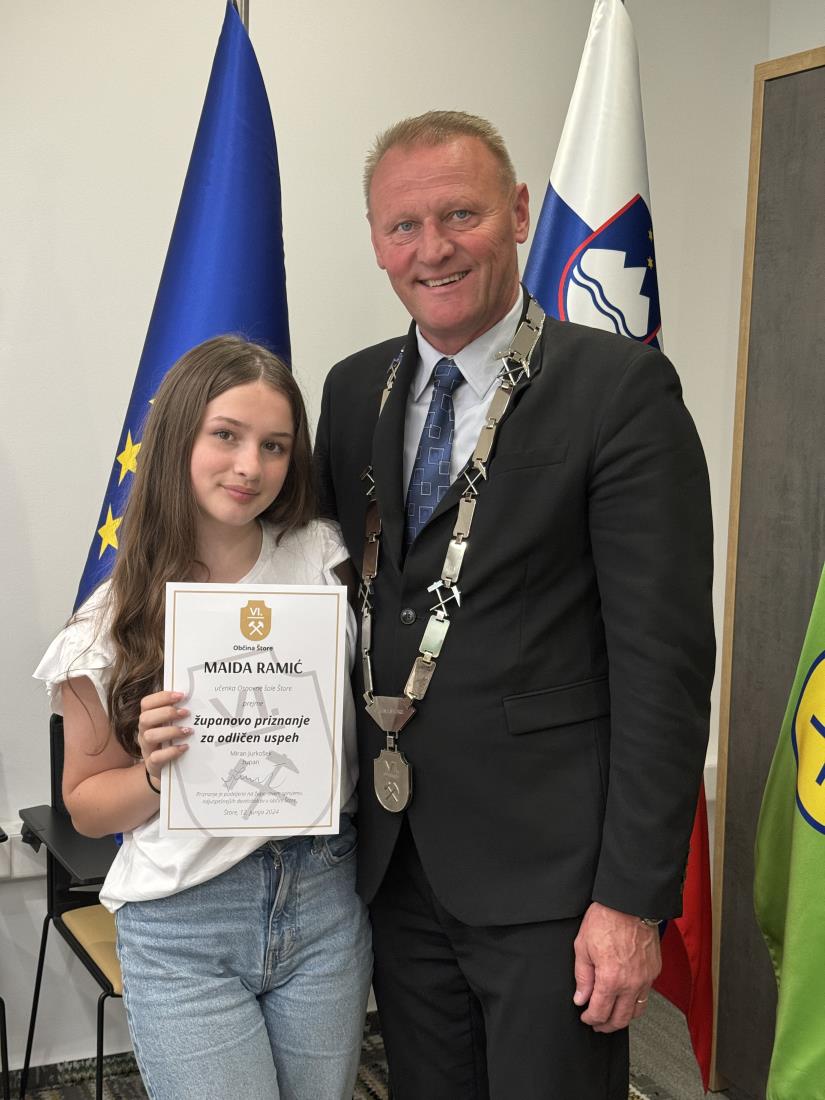 »Ne učimo se za šolo, ampak za življenje« (Seneka Ml.) je rek na vabilu, ki so ga prejeli . junija povabil najboljši učenci Osnovne šole Štore na sprejem k županu občine, v sredo 12. junija 2024. Dogodka je se udeležilo 9 izjemnih učencev, ki so aktivni in uspešni na več področjih in si zagotovo zaslužijo našo pozornost in iskrene čestitke. To so: Tai Rožman Berčon, Peter Gorenjak, Tajda Mastnak, Maida Ramić, Gašper Romih, Neža Selič, Ajda Vouk, Maks Zimšek, Mihael Žlender. Župan je v pozdravnem nagovoru dejal, da so učenci tekom vseh devetih let šolanja dokazali, da se z delom, vztrajnostjo in trudom lahko doseže zastavljene cilje. Še bolj kot cilj, pa jim naj bo tekom življenja pomembna pot, na katero bodo stopali in po kateri bodo puščali sledi. V Osnovni šoli Štore in kraju so pustili sled, sedaj pa naj pogumno sledijo svojim sanjam in naj ne skrbijo, če kdaj zaidejo, pomembno je, da ostanejo zvesti sami sebi in da so ponosni nase. Zahvalil se je tudi ravnateljici Mojci Rožman, razredničarkama Barbara Štimulak in Manici Doberšek, za odlično vodenje učencev po njihovi izobraževalni poti. Na koncu je župan učencem, ki so se udeležili sprejema, izročil posvetilo in spominsko darilo ter jim zaželel prijetne počitnice in vse dobro v prihodnosti. Šola in krajevna skupnost smo tisti, ki skrbimo, da zapisani rek drži, torej da se učenci ne učijo samo za danes in samo za šolo, ampak za danes, jutri in za celo življenje.